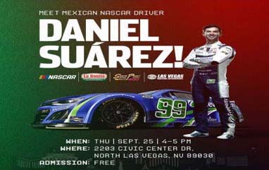 In his ninth season in the NASCAR Cup Series, Suárez will make a special appearance in Las Vegas to celebrate Hispanic Heritage Month. Fans will have the chance to meet Suárez in person, take photos and join in the celebration.