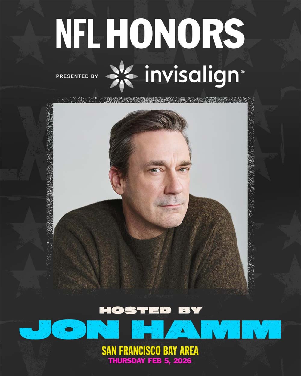 Jon Hamm, one of Hollywood’s most talented and versatile actors, will host the 15th annual NFL Honors presented by Invisalign, an Align Technology brand, on Thursday, Feb. 5 at the Palace of Fine Arts in San Francisco. The primetime awards special recognizing the standout performances and achievements on and off the field from the 2025 season will air live at 9 p.m. ET / 8 p.m. CT on NBC and NFL Network, with streaming available on Peacock and NFL+.